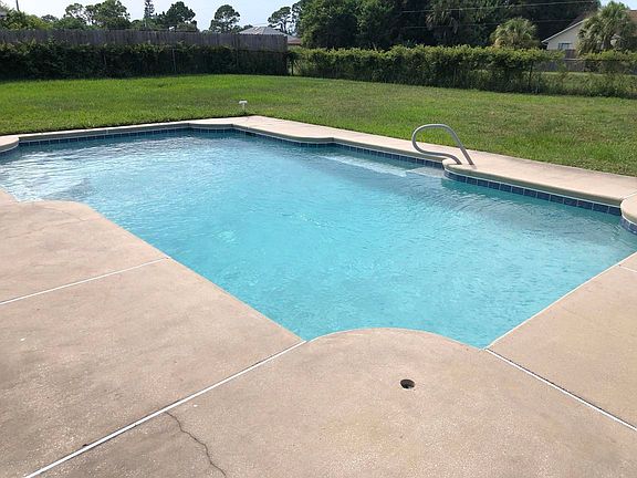 (Update*** Has passed two inspections and appraisal -- Available for QUICK CLOSE) Amazing oppotunity to own a 4 bedroom pool home in Palm Bay. This home is ready for YOU! From the moment you walk in, you will see new tile and carpet. This along with a AC(2017) and Water heater (2015) gives this home great potential for any owner. All appliances convey and enclosed garage, adds the opportunity for your game room or additional family room. Enjoy your inground sport pool with massaging jets along with the large fenced in backyard with plenty of room for pets. Vacant lot next door adds an additional level of privacy.
