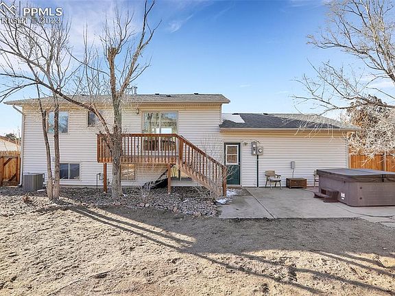 Look no further than this impeccably maintained and updated bi-level home with 3 bedrooms and 2 bathrooms (plus potential for a 4th bedroom) located on a spacious, tree-filled lot with RV parking. The updated and open kitchen features stainless steel appliances, custom lighting, and a convenient side buffet with extra cabinets. Enjoy neutral paint and newer flooring throughout, and take in breathtaking views of Pikes Peak from the beautiful bay window in the living room. The renovated bathrooms boast gorgeous tile surrounds, vanities, and flooring, and the oversized two-car garage provides ample storage. Best of all, this property is free of HOA fees and offers easy access to all military bases, local amenities, and entertainment options. Additional features include a lower-level recreation/family room that could also serve as a large master bedroom, a spacious backyard with a park-like setting, deck, and two patios, and plenty of room to park your RV and other toys. Plus, the property includes a hot tub for relaxation and has been completely rewired, with the old Fed Pacific panel upgraded for added safety and convenience. Don't miss out on all the benefits of living in the Powers Corridor, just minutes away!
