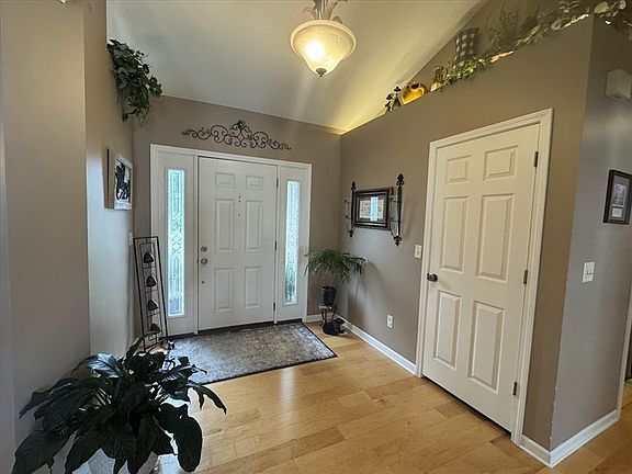 Beautiful custom-built home featuring a stunning great room with cathedral ceilings and an open kitchen, dining, and living area. The main floor includes a spacious master suite with soaring ceilings and a luxurious en suite, plus two bedrooms with a shared bath. A laundry room and oversized two-car garage add convenience. The finished basement offers a huge family and rec room with wet bar, fourth bedroom, and third full bath. Immaculately maintained, this home boasts unique design touches, professional landscaping, a privacy-fenced yard, and a great patio for outdoor living.