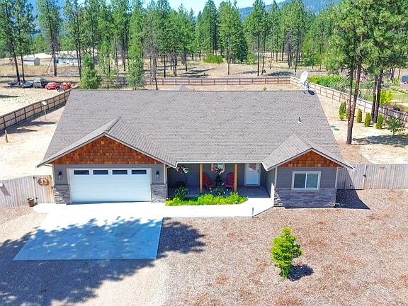 BEAUTIFUL CUSTOM BUILT HOME- ONE LEVEL LIVING ! 1713 Sq Ft, 3 Bd 2BT 1.17 Acres, Open Floor Plan, Kitchen, Dining & Living Room w/ Vaulted Ceilings, Custom Lighting & Ceiling Fans. Hunt Wood Kitchen Cabinets w/ Hand Stone Quartz Counters & Island, ,Stainless Steel Appliances, Stone Gas Fireplace w/Mantle & Built in Shelves, Quality Laminate Flooring. Cascade Dbl Windows, LG Primary Ste, Big Walk in Closet w/California Closet set up inside, Lots of Upgrades, CA Setups in all closets, Covered 12 x 32 Concrete Entertainment Patio w/ Two Sliders to Patio from Dining Rm for Bar B Cues & Primary Ste for access to Salt Water Hot Tub, Oversized 2 Car Garage, Drywalled & Insulated, Landscaped & Fenced w/ Room for an add 'l Shop or RV Parking. Minutes to Lake Roosevelt Boat Launch & Marina!
