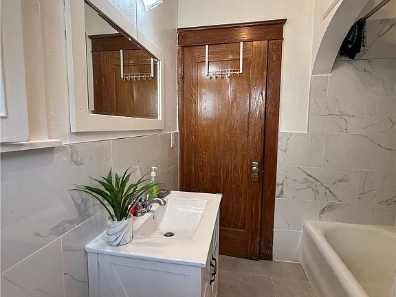 This charming ranch-style house offers convenient single-level living, a detached garage that accommodates four cars, two bedrooms with the possibility of converting a third, a spacious kitchen that opens into the dining area, and a delightful enclosed front porch that is filled with natural light! The location of this home is ideal, as it is near public transport, supermarkets, and parks nearby.