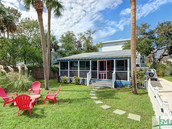This is your chance to buy a piece of Tybee history with a beautiful blend of old school details mixed with fresh updates. Built in 1936 as the bachelor’s officers quarters at Ft. Screven. The home was decommissioned and eventually relocated to its current location in 1978. This adorable beach bungalow has a front screened in porch, 2 bedrooms, 2 full baths, additional sunroom (could be extra bedroom), dining space, family space, breakfast space and laundry room. Original flooring in the bedrooms and kitchen. Updates to the kitchen include quartz countertops and SS appliances. The home is efficiently heated/cooled with mini-splits just 5 years old. Hurricane grade windows on the front of the house and metal roof were installed in 2014. This home has classic Tybee palm trees, a white picket fence, white stone driveway with off street parking. There was 46K worth of foundation and added piers done in 2018 with a lifetime warranty. Walking distance to restaurants, nightlife and shops.