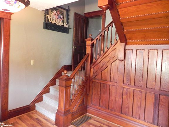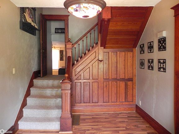 Welcome to the charming residence at 1307 Main St, Bedford, a picturesque home combining modern comfort with traditional elegance. This 5-bedroom, 1-bath house is a treasure trove of updates and unique architectural features. Step into a harmoniously designed space boasting a beautiful staircase, ornate leaded glass doors and windows, and rich woodwork. The home features an updated kitchen with an island and living space enhanced by pocket doors and an elegant dining area, giving a cozy feel while offering plenty of space for hosting. The exterior of the home is just as impressive, freshly painted and surrounded by well-maintained outbuildings including a wash house and a delightful treehouse. The outdoor features are ideal for relaxation and recreation - a basketball court, a fire pit area, and a large covered patio overlooking a lush, landscaped yard with a thriving peach tree, perfect for serene summer evenings. An expansive finished basement offers an additional family room, providing extra space for gatherings or a quiet retreat as well as an electric fireplace, creating a cozy ambiance any time of year. With ample storage and a convenient layout, the home meets an array of needs. Practicality prevails with a 2-car attached garage with new doors, a 1-car detached garage, and large circle drive. This property is an exemplary blend of style, space, and comfort. Discover the unique character and many updates of 1307 Main St and envision yourself in this lovely setting.