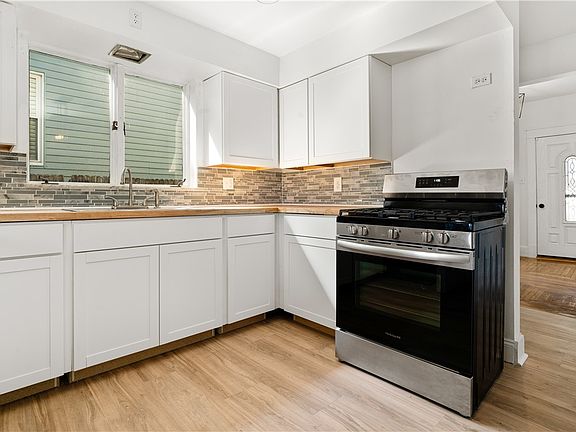 Stylish butcher block countertopsBright living spacePlenty of storageTiled backsplashOriginal hardwood floorsSpacious bedroomsUpdated kitchen
