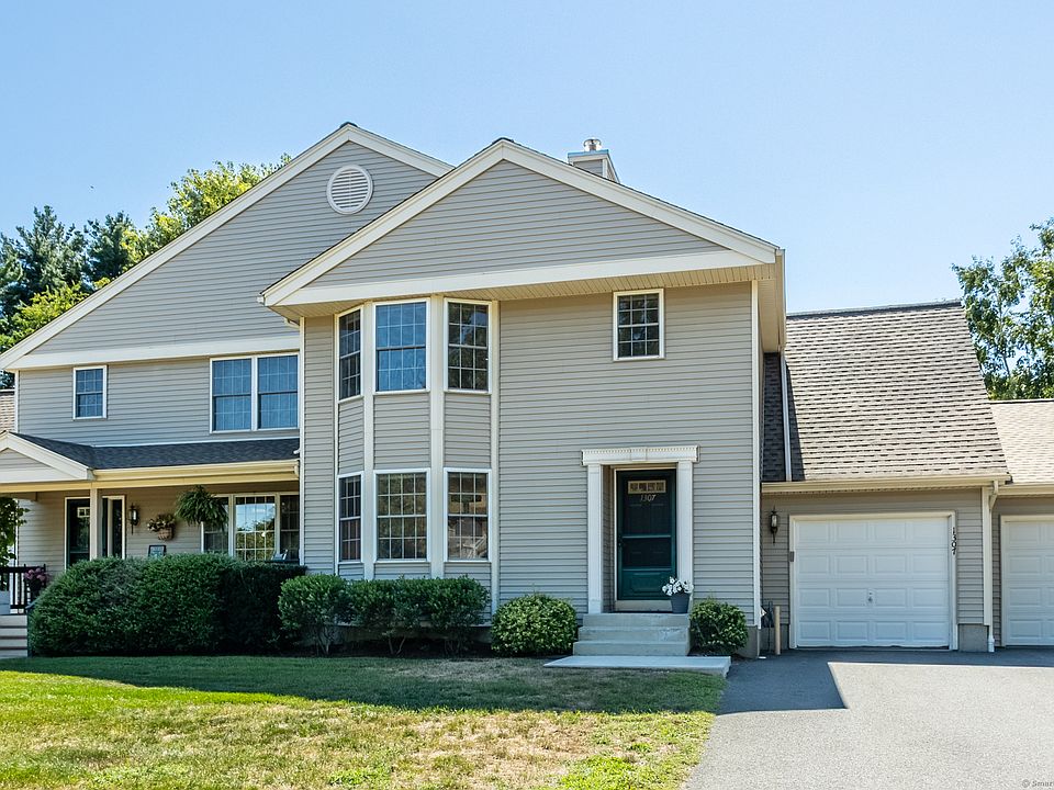 Welcome to Meadowview! This beautifully maintained, freshly painted 2-bedroom, 2.5-bath townhouse offers charm, comfort, and convenience, all surrounded by lovely gardens and scenic walking paths leading to the Connecticut River. The main level features a welcoming foyer that flows into a bright living room with a natural gas fireplace and newly finished hardwood floors. The dining room, also with hardwood flooring, opens to a newly stained deck overlooking the gorgeous backyard-perfect for entertaining or relaxing. The kitchen is equipped with granite countertops and brand-new appliances, conveniently located next to a stylish half-bath. Upstairs, the spacious primary suite includes a walk-in closet, sitting area, and full bath with granite finishes. The second bedroom is generously sized with ample closet space and is served by another full bath with granite countertops and a linen closet. The full-sized basement provides laundry facilities, abundant storage, and excellent potential for finishing. A newer energy-efficient HVAC system adds peace of mind, and an attached garage completes this wonderful home. Meadowview is a welcoming community for all ages-and yes, pets are welcome too!