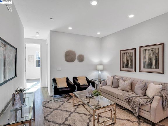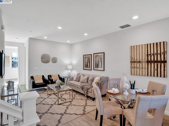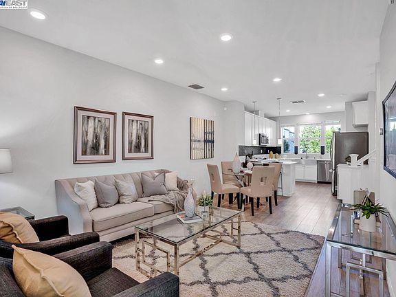 Welcome to this stunning townhouse-style condo nestled in a prime Milpitas neighborhood. This East-facing 3-bedroom, 3-bathroom unit boasts a generous 1,643 square feet, providing ample space for comfortable living. The house faces Bob McGuire park with four tennis courts and a delightful children's play area. Its rare park-facing positioning offers unparalleled privacy -- this unit doesn't overlook the neighbor's kitchen! The home has upgraded flooring that is both elegant and practical, which is waterproof and easy to maintain. The property has been freshly painted and features new carpets on the stairs. This remarkable residence comes fully equipped with a refrigerator, washer and dryer, and an advanced Xfinity video security system. The tandem garage has an EV charging port. The location couldn't be more convenient, being within walking distance of the highly-ranked Stratford school, Trader Joe's, and the Milpitas BART station. Freeways 680 and 880 are just minutes away. HOA covers Trash and Sewer. The townhome is bathed in natural light, with refreshing breezes flowing through, enhancing the serene ambiance. Begin each day with awe-inspiring mountain views and the warm embrace of the morning sun.