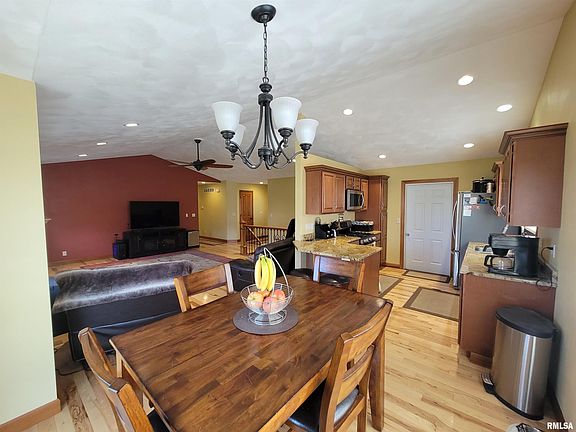 Beautiful 3 bedroom ranch on large lot in Trails Edge Subdivision. Open floor plan. Plastered walls and ceilings. Beautiful hickory hardwood floors, vaulted great room, gas fireplace and main floor laundry. Basement with full bath rough-in. Spray foam insulated walls. Pool table to stay. Security cameras included.