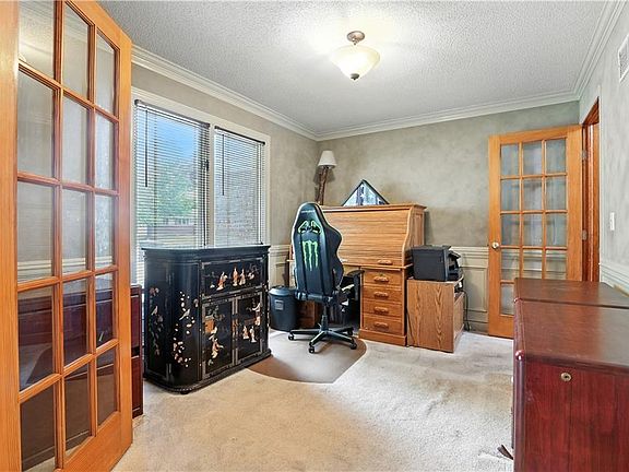 The bright and open family room welcomes you with soaring vaulted ceilings and a see-through fireplace that creates a warm connection to the kitchen. The kitchen is oversized, complete with an island, abundant cabinet space, and a sunny breakfast area overlooking the backyard. Off the entryway, a versatile room is currently used as an office but would also make an excellent formal dining room. The main floor master suite provides convenience with a walk-in closet and full bath. Hardwood floors paired with carpet create the right balance of style and comfort throughout this level.