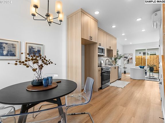 Street of Dreams builder showcasing their quality design and finish! Experience the pinnacle of urban living in this breathtaking move in ready condo, ideally located in Woodlawn with a phenomenal 99 BikeScore! Just steps from Woodlawn City Park and within 0.3 miles of farmer’s markets, coffee shops, shopping, and groceries, convenience is at your doorstep. This impeccably designed residence features an open-concept floor plan that exudes warmth and brightness. Enjoy the outdoors with a charming back patio and a private, fenced yard—perfect for relaxation or entertaining. Every detail has been carefully crafted, showcasing high-end finishes throughout. The custom kitchen is a true culinary haven, boasting modern cabinetry, sleek slab counters, stunning tilework and an upgraded stainless steel appliance package. Upstairs, discover two spacious bedrooms with vaulted ceilings and expansive windows that flood the space with natural light. Stylish fixtures, elegant lighting, and designer tones complete this custom 2 bed/2.1 bath home, making it a sophisticated retreat in the heart of the city. Enjoy low HOA dues + 1-year builder warranty with peace of mind from a local boutique builder! (List price is subject to the buyer qualifying for the Portland Housing Bureau - System Development Charge exemption program to promote affordable housing in Portland).