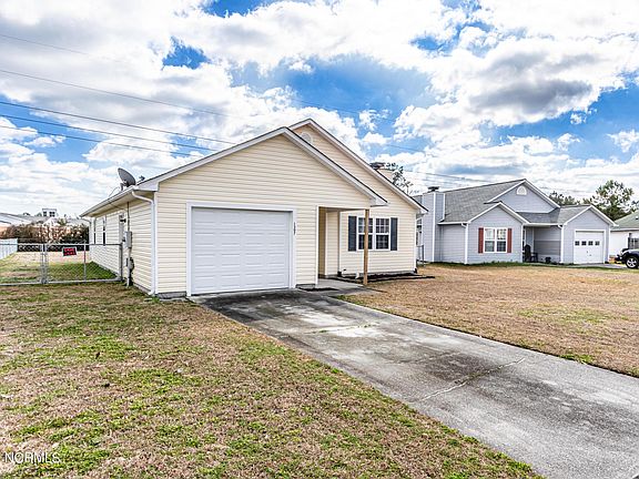 Well-kept home located in the Southwest area of Jacksonville, NC only minutes from Camp Lejeune and the New River Air Station. This home has all that you will need to begin your start from first time home ownership or to simply retire and down size. Nestled in a cozy neighborhood the exterior comes with a nice sized patio, fenced in yard, and gutters. This three-bedroom, two bath home has appliances that are approximately three years old and if that wasn't enough the washer and dryer are included. There is a beautiful fireplace for those cool nights and an open dining/living area for entertaining. Carpet is a thing of the past; this home has laminate flooring throughout. May we make your dream a reality!