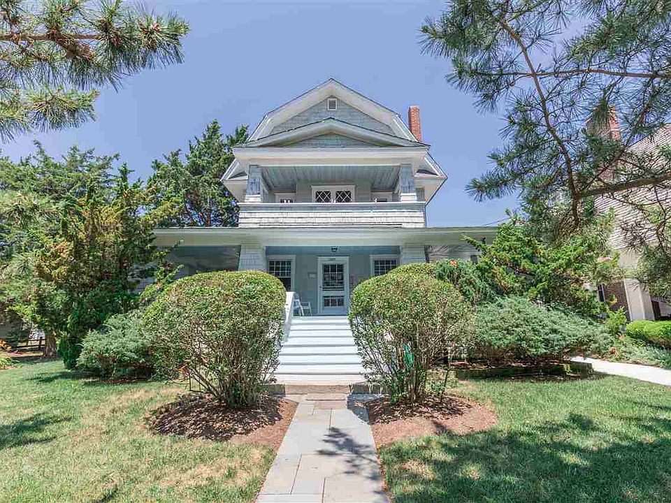 Welcome to 1307 New Jersey Avenue a Classic Cape May Beauty! Grand Old Cape May Charmer with a view on a huge 110 x 125 foot lot which appears to have plenty of room for a pool and then some. This 8 bedroom, 3.5 bath home greets you with a traditional covered Cape May wrap around porch which is cool even on a hot summer day. Large enough to languish with family, friends, pets and children and not be cramped. The first floor has high ceilings, wood floors throughout the home a large living room with gas fireplace, dining room large enough for all the family, half bath, butlers pantry, steps to the basement, kitchen and a large back deck. The second floor has two ocean facing bedrooms with covered deck, hall full bath, locked owners closet and two rear bedrooms. All bedrooms have window air conditioning. The third floor a very similar floor plan with two ocean view bedrooms, hall bath, larger owners closet, two rear bedrooms one of which is full of the owners personal belongings. The yard is massive and lends itself to being private with the way the trees are placed. There is a large garage with a dormer room above and an attached shed. Amazing home with a wonderful location. Being sold with most of the large pieces of furniture. Excluded is all the art, small items, collectables and items in the owner's closets and most of what is in garage. The home has no heat and is being sold in its current condition and has been the families summer home for years facilitating a few weeks in the summer with weekly rentals. Showings only during changeover.