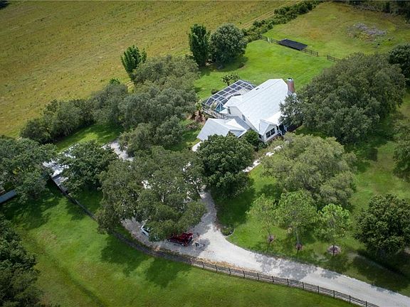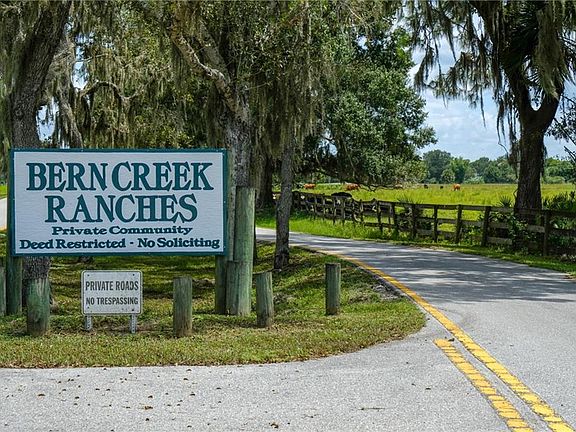 Own your very own 5 ACRE MINI RANCH in Sarasota! Come check out this Peaceful and Private Horse friendly home on the range in Bern Creek Ranches. Swing on your front porch while enjoying the view of the grand oak trees and pond. Relax while watching deer and other wild life pass by. This two story open plan home is great for living and entertaining. The kitchen is full of granite counter tops, all wood cabinets, and stainless steel appliances. The large central kitchen island is the hub of the home and perfect place to gather. You will love sitting by the fire in your two story stone fire place. The master bedroom is ground floor level with french doors opening to the private screened pool area. The pool is huge with custom tile, water feature, and solar heated. 5 ACRES of land gives you privacy and room for all the toys and animals including horses. This MINI RANCH has 2 fenced pastures, Open Barn, Tack Room, Chicken Coop, and Gated Driveway. The Barn has Power & Water with large overhead door that allows RV , Boat, and other toy parking. All this and so much more! This may be the one you have been waiting to call HOME! Bern Creek Ranches is located 15 minutes to I-75, 15 minutes to Shopping, 25 minutes to Downtown, 30 minutes to the beach. Enjoy living in the country and close to all the wonderful places Sarasota has to offer.