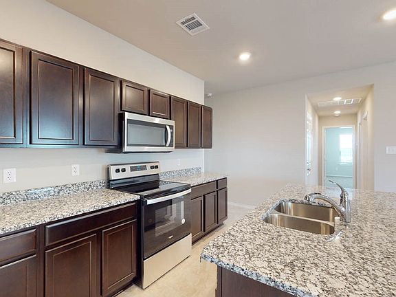The primary bedroom features an attached primary bathroom and a spacious walk-in closet for all your belongings. The spacious secondary bedrooms are carpeted and have easy access to the laundry room and secondary bathroom. You’ll enjoy the smart home technology that is built into every D.R. Horton home.