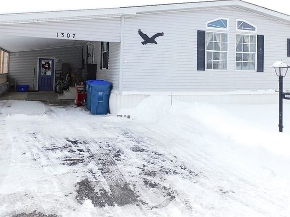 Welcome home to 1307 Ridgewood Drive. This well-maintained 1700 SQ FT 3 bedroom 2 bathroom modular home has it all for a fraction of the price of a single-family home. A nice cozy carpeted 20x20 living room is the focal point of the home. The open-concept dining room and kitchen make it a great place to host friends and family any time of the year. The kitchen includes all of the appliances and has oakwood cabinets and a generous-sized island. The 16x15 primary bedroom has a walk-in closet and full primary bath with a jacuzzi tub and walk-in shower. Outside features a newer paver patio behind the attached shed (14x7) for the long summer nights that are approaching. The home also has an attached carport and is a double-wide driveway. Lot Rent includes garbage, basic cable and covers all the taxes on the property. A truly stunning home!!