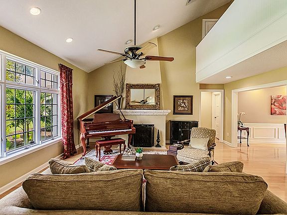 If you're tired of cookie-cutter style homes then you will be impressed with this stately custom home in a beautiful neighborhood. The community consists of twelve estate-sized homesites located in a very desirable and established area. From the private cul-de-sac location, you will enter this gorgeous property on a circular driveway. Pride of ownership is apparent upon entering the dwelling. You will be welcomed into the large formal living room with vaulted ceilings and fireplace. You can easily entertain large gatherings in the spacious dining room which is adjacent to the kitchen, separated with a convenient butler's pantry. The kitchen is truly a cook's dream with granite island/counters and backsplash plus high-end appliances which include a subzero refrigerator, GE Profile Stainless steel appliances, and a 30 bottle wine refrigerator located under the center island. The intimate family room is off the kitchen with a coral stone fireplace, built-in window seats, plantation shutters, and from the charming French doors, you'll have access to the large covered lanai overlooking the expansive backyard with a delightful southern exposure. Also conveniently located off the family room is an office/den with a wet bar and half bath which could easily become a 4th bedroom, if desired. The oversized master bedroom is also located on the first floor and has separate walk-in closets, custom built-ins, and a walk -in shower. This home was designed with families and privacy in mind with two additional, large bedroom suites upstairs which each have their own individual, full baths, walk-in closets, and custom built-ins. Additional finishes include crown molding and wood floors throughout (with exception of tiled bathrooms). There is plenty of room for a large pool in the backyard and there are no HOA fees. Just minutes to golf beaches, Desoto Memorial Park, and Robinson Preserve which offers miles of bike and walking paths and kayaking.