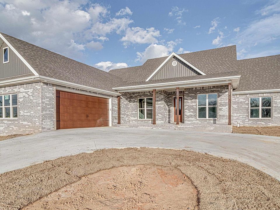 Modern amenities with farmhouse character! This 4 bedroom 2.5 bath New Construction hosts a unique layout with a formal dining space, open concept kitchen and living area with a soaring vaulted ceiling. White shaker cabinets in the kitchen with a beautiful gray granite, tile backsplash, custom wood vent hood and black accents will leave you wanting to cook at home every night! Don't forget the pantry! Thats on everyones wish list! Black accent , shiplap fireplace with a gas log insert is found in the living room with access to the back covered porch! Split floor plan with spacious guest bedrooms and a master suite that is sure to please. Barn door accent leading into the bathroom with tile shower, soaker tub, large closet and double sinks. Large laundry area and conventionally located guest 1/2 bath. Beautiful gray brick exterior with siding and wood accent. Circle drive to make parking a breeze! Call today for your personal tour!!