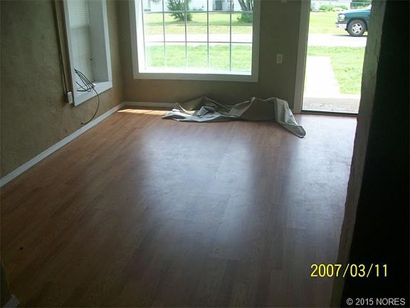 completely renovated 2 bed 1 bath house on s. side of Henryetta new water line, breaker box,roof,windows.and fiber-cement siding new front porch,floor ,titled bathroom w/ new shower & much more. all appliances garage w/ electricity & shed huge cor lot