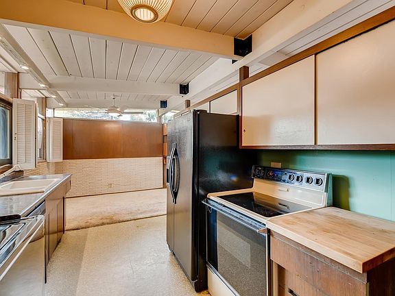 Mid Century Modern gem waiting to be remodeled in coveted Krisana Park! With only 2 owners in its 64 year history, this home has lovingly been cared for but minimally updated. Original hardwood floors have been protected for years underneath carpeting and look brand new! And the beautiful Mahogany paneling has never been painted, something you rarely find! The private courtyard and clerestory windows are what make these architecturally interesting homes so special! Sewer line has been scoped and is in good condition! This cool retro home is the best value Krisana Park has seen in a while! Welcome home to your Atomic Ranch!