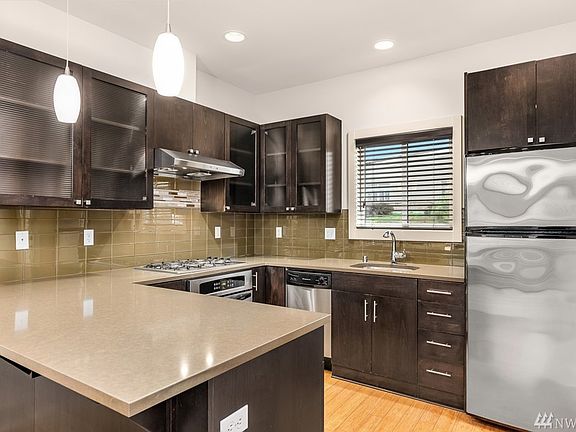 Bright contemporary townhome in a killer location walking distance to the Light Rail and all the great amenities of North Beacon Hill. The fenced and private backyard with southern exposure is ready for your BBQ and furry 4 legged friends. The master bedroom has views of the mountains, Sound and City. Warm up by the gas fireplace and enjoy the open floor plan while you cook and entertain. Very well appointed home with no dues and off street parking. Lightly lived in by one owner who has maintained it perfectly. Walk to coffee, dinner and to the Light Rail. Welcome home!
