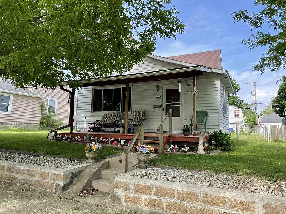 This cute little bungalow offers 2 bedrooms, fully applianced eat-in kitchen, large laundry/mud room. Oversized 2 car detached garage with extra storage, fenced yard, nice covered porch. Some furniture will remain.