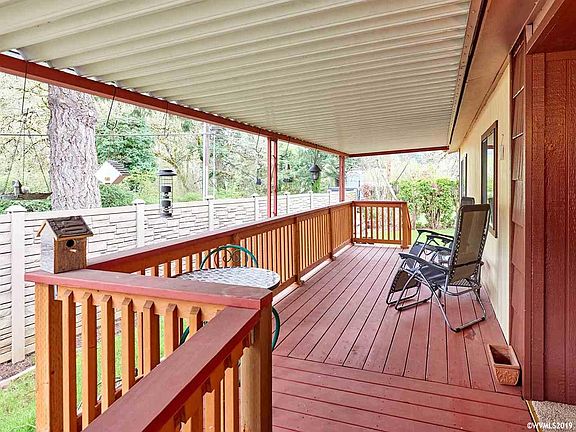Accepted Offer with Contingencies. Well kept home with a beautiful view of Silver Creek! Overlook the creek on a newer covered deck and patio with ramp access. Newer roof, Heating/AC system. Lovely home with breakfast nook, 2 bedrooms and 2 full baths. 2 storage sheds and covered carport, beautifully landscaped. Much to offer at this price! Park rent $468 per month includes WSG. 55+ park. Sale is subject to buyers park approval.