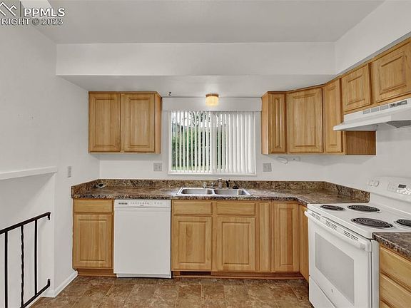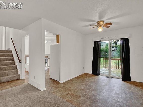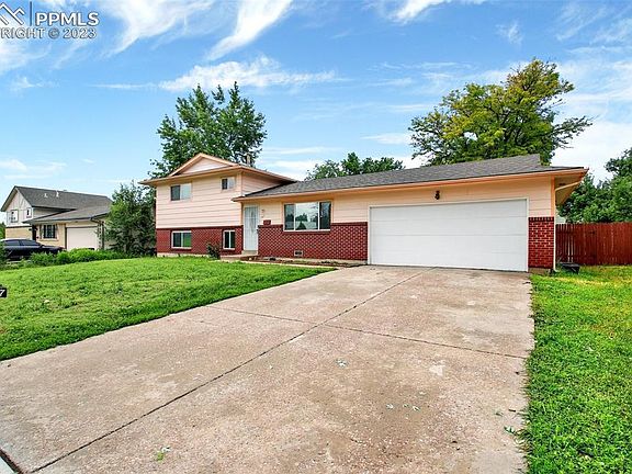 Move in ready! Big lot with a great tri-level floor plan. 3 bedrooms upstairs with full bath including double vanity & new flooring. Downstairs enjoy living room and dining area with sliding door to big deck. Plenty of room for barbecues, trampolines, etc... and yard is fully fenced! Park in the two car garage which is attached for easy access and storage. A few steps down from the kitchen is a cozy lower level with built in fireplace and shelving. Lower level 3/4 bath. All appliances including washer/dryer included. Updated vinyl windows - real hardwood floors in all bedrooms. Huge backyard has shed & newly painted 16x13 deck. Walk to Leon Young Sports Center and nearby schools. Easy access to Fort Carson, CO Springs Airport, I-25, and shopping. NEW ROOF JUST INSTALLED!
