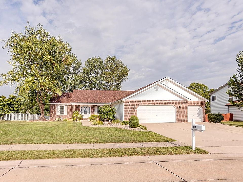 Ranch living with luxury & easy accessibility. vaulted ceilings & hard scape flooring throughout. Great room with fireplace and opens to a custom kitchen with gorgeous custom cabinetry. Check out the work island with high top seating with sink and d/washer. So many drawers with custom inserts ( knife drawer, utensil, pots and pan and seperate lid drawers, 2 spice pull out cabinets. Check out the double oven kitchen aid wall oven with blue interior with convection, induction cooktop , built in microwave. Fantastic refrigerator too. Classic dining room Fresh paint in last year- trim,doors, walls. Newer blinds too. Main suite with Zero entry roll in shower with 3 shower heads. 2 closets in m/bedroom. Split bedrooms with 2 bedrooms and full bath HVAC, windows, tankless h2o heater, roof all replaced in last few years. 3 car garage with 1 bay that has a hvac split system could be deluxe craft space/man cave. Built in storage. Landscaping updated. Generac generator. Newer gutter guards