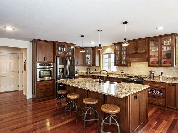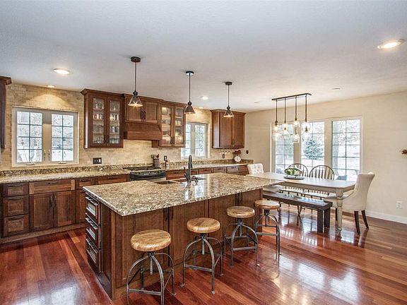 Pottery Barn feels all around! Sprawling ranch home w/open concept & just under 3500 finished square ft. Nestled on just under a half acre lot w/wooded setting in desired Timber Ridge Subdivision. Striking kit. w/ custom cabinetry, crown molding, granite tops, & copper sink. Attractive living rm w/ trey ceiling, crown molding, & gas fireplace. Added sunroom offering so much natural light w/slider to the oversized patio & wood burning stove. Spacious master suite w/ trey ceiling, W/I closet, private bath w/
