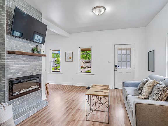 OPEN HOUSE SUNDAY 1-3pm! A true hidden ’05 gem, this elegantly updated home is a must see boasting a large fenced back yard, upstairs loft & detached 2 car garage! Located in a quiet & peaceful area of the Riverside neighborhood it is conveniently close to the popular River Greenway hiking/biking/walking trails along with many favorite local amenities such as el Azteca Mexican Restaurant, Klemm’s Candlelight Cafe & Firefly Coffee House—not to mention mere minutes from Glenbrook Square & downtown FW! Sure to charm from the moment you arrive, you might never guess this 3 bedroom, 1 bath home was built in 1940 as it has been completely refreshed & well maintained from outside in! Neat & tidy exterior present curb apple with rock beds, inviting covered front porch & paved driveway linking oversized garage. Inside you’ll find a bright & welcoming atmosphere complemented by wood flooring, crisp white walls, high ceilings & an open concept floor plan which allows for fluid existence. Generous L-shaped main living area gets plenty of natural light & features a floor-to-ceiling electric fireplace with floating mantel & accent wall with wainscoting. Formal dining is open to both kitchen & living—perfect for entertaining! Kitchen is cheery & colorful with abundant cabinetry & modern hardware. Stylish main floor full bath off kitchen with matching wainscoting, updated vanity & big walk-in shower. 2 good sized bedrooms (1 with ceiling fan) are located on the main floor with ample storage throughout. Carpeted stairs off living lead up to extended lofted flex space with window—would make a great 3rd bedroom or possible rec/reading area as needed. Side exit & stairs off kitchen to unfinished basement containing laundry, utilities & additional dry storage. Paved driveway doubles as a back yard patio with a cozy nook for dining al fresco, grilling & chilling, or simply kicking back & relaxing in your own realm! Fenced portion of back yard is expansive & has private feel due to tall trees offering both shade & privacy. There’s another bonus cement patio back here as well as a free standing shed for all your tools & toys, plus a built-in fire pit ready for roasting marshmallows! Easy access to nearby shopping, dining, groceries & entertainment options. All in all, this is an excellent opportunity to own this move-in ready home—take action today!