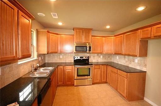 All brick split flor plan with custom cabinets, granite coutertops, master bath has whirlpool tub & walk-in shower with bench, over-size isulated garage & door and fully sodded yard. Stainless steel appliances and crown molding, privacy fence & guttering