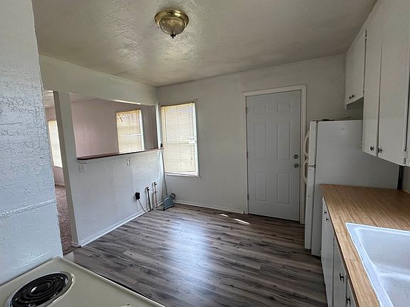Cute, Charming Ready to move in home. The 700 sq ft home has been updated with such cute features and possibilities. Don't miss out on the two bedroom, open concept house looking for a great buyer. Make this a starter home, investment, downsize or permanent place to call your own. Then fenced back yard included a small storage building and cellar for safety. Bedrooms and living area contain modern, grey color. One bedroom is carpet the other is laminate. The kitchen has an open wall to remain in the conversation of anyone in the living area. The driveway gravel was recently filled for smooth parking. Selling "AS IS" Give Renee a call for entrance and viewing.