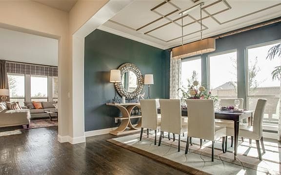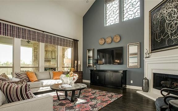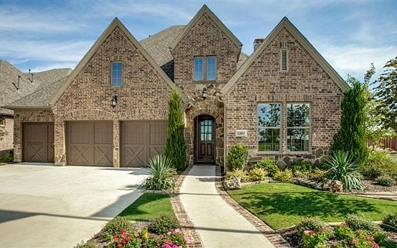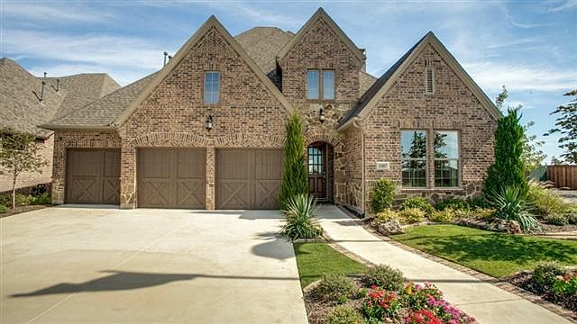 MLS# 13288284 - Built by Darling Homes - Ready now! ~ Beautiful MODEL HOME in the Prosper ISD Light Farms Community! Premium Homesite with Fabulous View of Water and Amazing outdoor living space with Large Bricked Patio and Outdoor Fireplace! Balcony overlooking Vaulted Family Room that is Open to Kitchen. Stainless Steel GE Appliances, Hand-scraped Hardwoods, Upgraded Carpet, Lighting, Landscaping, Media and MORE!