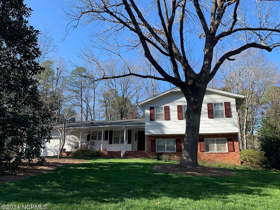 Lovingly maintained and updated one owner home with In-law or nanny suite. Covered front porch is a perfect spot to sit and rock, it overlooks the mature, landscaped, front yard. Entry leads to updated kitchen and breakfast room, there is a pantry, steel appliances, great cabinet & counter space and bamboo floors. The family room has a picture window that overlooks the private backyard and there is also a formal dining room with chair rail molding. The split level home offers good separation of space. Three bedrooms upstairs. The primary bedroom is a great size and has an updated en suite bath and a walk-in closet with custom built-ins plus additional closets for him. The Lower Level offers a bonus room with laminate flooring, walls with built-in shelves, a fireplace with gas logs, and a wet bar. There are two bedrooms and a full bath on the lower level. (One bedroom is currently being used as a home officer/study). The home has an oversized two car garage with tons of built-in cabinets. It also offers an in-law suite to die for - kitchen, living area, bedroom and bath. The home is on .4 acres and has a fenced rear yard with a storage shed - perfect for gardening supplies. The rear deck is a perfect place to relax and unwind. Home has five bedrooms plus the in-laws suite.