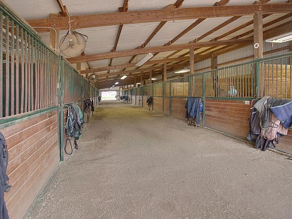 Custom 4 bedroom, 3 bath, majestic tree-lined paved driveway with rod iron electronic gate. Home has vaulted ceiling and open floor plan. Hardwood floors lead to kitchen and breakfast nook with passage outside to covered patio and landscaped pool area. Property includes a studio guest apartment, pond, workshop and 2 horse barns. The 24 stall first rate facility includes 85'X190' indoor riding arena, heated wash rack, tack rooms. Out front is a charming 7 stall barn and 6 steel fenced pastures.