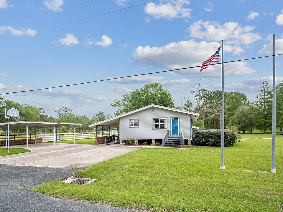 Honey! Stop the car! Amazing opportunity to own gorgeous acreage in St. Amant! 4.72 Acres ~ This home has NOT flooded (ever). Lake Elementary, Middle & St. Amant High School. 4 Bedroom 2 Bath very well maintained home on piers has many built ins and unique qualities, like walk in closets in most of the larger than average bedrooms. There is a large workshop (this building did get water in 2016), equipment shed, back-up generator and an oversized raised deck with perfect views. Metal roof is hail proof and has been maintained, there is a double carport and a ramp next to the side entrance steps for easy access. Brand new modad installed March 2023. Kitchen has a gas cooktop, vented hood, wall oven, dishwasher, large oversized porcelain sink, and a countertop convection microwave. Most of the lower cabinets have pull out drawers. Washer and Dryer is included. The pantry has many built in slanted shelves for easy canned goods storage. Primary bedroom has built in dressers with ample drawer space and a walk in closet. One of the bedrooms has a wall of built in's including closets and a fold out desk area. No carpet. Real wood parquet flooring thoughout most of the home. Alarm system is monitored and paid through end of the year. Front ditch is covered and has culverts/drains/catch basins installed. Hardiplank siding on brick piers. Measurements deemed reliable but not guaranteed by Sellers, Broker or Agent.
