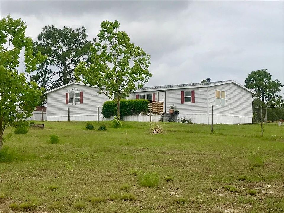 If you are looking for a home with some land-- look no further. This 2,214 sq ft triple-wide, 5-bedroom, 3 full bath manufactured home is situated atop almost 5-acres! Enjoy quiet country living right from the comfort of your living room complete with fireplace for those chilly Florida evenings. Like entertaining? This home boasts a wet bar, formal dining room, kitchen and back deck large enough to host all of your family and friends. The kitchen is light and airy and features tons of cabinet and counter space. There is an island that doubles as a breakfast bar and still plenty of room for a small dinette. Double sliding glass doors open up to the back deck and overlook nothing but land. This house has a split floor plan with the master suite on one side and the remaining 4-bedrooms on the other. The master retreat has a large walk-in closet and is easily large enough to accommodate a king suite. The master bath has dual sinks, garden bath, separate shower stall, and extra cabinets. All four bedrooms have nice sized closets and ceiling fans. The utility room features more cabinets. This home needs your personal touch and little TLC. Roof replaced in 2014, HVAC replaced in 2012. Has also been used as an AirBnb so potential income property too! This listing contains 2 parcels of land. Call today to make your appointment to see this before it's gone!