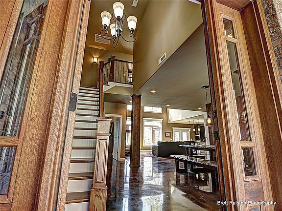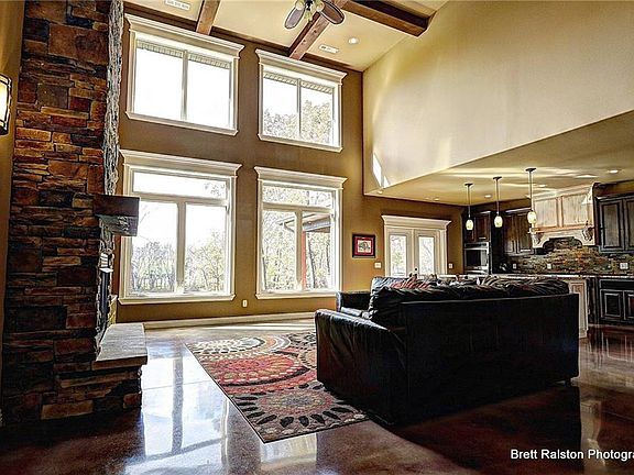 Custom built home on 9 gorgous acres, Commercial appliances,20 ft ceilings in Living room,2x6 exterior walls,huge bonus room, 4 bedrooms with 4 full baths, Master shower is also a steam shower, polished concrete floors on main level,handicap accessible with extra wide doors and halls, mother in law suite on main level with zero entry shower, walk in pantry is also concrete reinforced storm shelter, oversized garage,huge laundry/mud room.