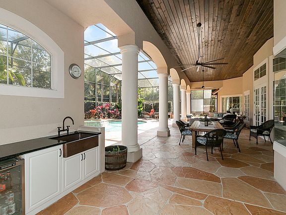 - Exterior Features: French Doors, Irrigation System, Trees/Landscaped, Mature Landscaping, Outdoor Lights, Storage, Gutters / Downspouts, Oak Trees, Screen/Covered Enclosure, Fruit Trees, Outdoor Kitchen