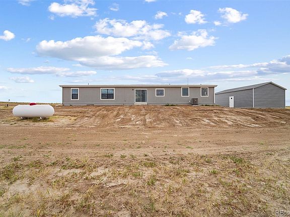Welcome to this immaculate, brand new ranch style estate on 35 acres and NO HOA! With room to sprawl both inside and out, you'll be able to have it all from animals to entertaining in the expansive open floorplan. Stunning craftsmanship shines throughout, starting with the gorgeous chef's kitchen featuring stainless steel appliances, an abundance of counter space and a large bar style island. The owners suite does not disappoint, having a 5-piece bathroom and huge walk-in closet. There is a living room and a den, a 4 car detached pole barn, and the builder has not spared any detail with the finishing touches including luxury trim throughout, a fire suppression system and owned propane tank. Enjoy living a world away in the prairie with the convenience of being just 50 miles from Denver! Don't miss out on this one! ***If buyer uses builder's lender, lender will give a $3,200 credit toward closing costs.***