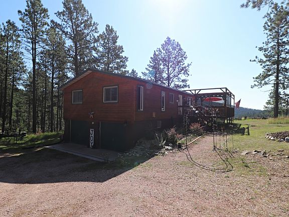 Exceptional home on over 1.5 acres of mature trees, overlooking Rapid Creek in Rimrock Canyon. Experience the best of the Black Hills from the comfort of home! The massive partially covered deck with pergola allows several areas for seating, making it great for everything from entertaining to enjoying the sunrise with your morning cup of coffee. Bring the outdoors in with new sliding glass doors from the deck to the living area. The vaulted ceiling and large windows elevate this space. The kitchen has been completely redone, with new cabinets and slate appliances. New light fixtures throughout enhance the home's elegance. Both bedrooms and remodeled bathrooms make up the rest of the main floor. Basement features a large 24x12 storage room as well as 16x12 bonus room/office space. The main floor has extensive updates including new easy maintenance flooring, cove heat and more. Buyer and buyers agent to verify all mls data.