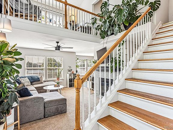 Nestled within Harvard Commons, this light and bright end-unit property epitomizes modern updates and an open layout. Tons of natural light fills this home, complimenting the 2-story high ceilings, all-new interior paint, and spacious main living spaces. The fireplace, with an updated surround and new stately mantel acts as the focal point of the inviting living room. Enjoy preparing a meal in the eat-in kitchen, featuring painted cabinetry, a stainless steel appliance package, and breakfast bar seating. Step outside to one of the only units in the community with a lush lawn. The patio overlooks the fenced-in yard, perfect for summer entertaining with shade from the mature trees. Retreat to your primary suite which includes vaulted ceilings, a walk-in closet, and an ensuite bathroom. A large secondary bedroom, a full bath, laundry, and a bonus loft – ideal for a home office, playroom, or additional living space, round out the upper floor. The unfinished basement has endless potential and provides ample storage. Additional features of this home include a new AC, a newer roof, all-new matte black hardware throughout, wifi-enabled smart lighting, an installed radon mitigation, a whole house humidifier, and sump pump, and an attached 2-car garage. Harvard Commons is ideally situated in central Thornton, within minutes of Cottonwood Park, neighborhood schools, a walking trail, shopping, dining, and public transportation. Do not hesitate to book your showing today!