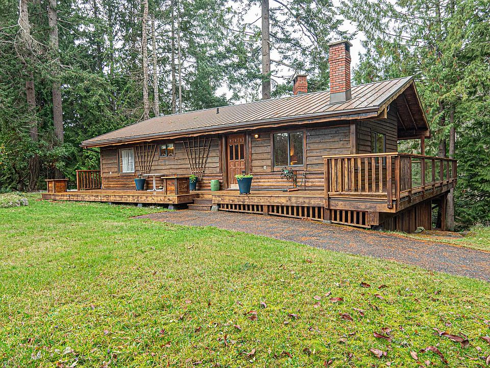 Perched above Porlier Pass Road and minutes from Retreat Cove and Pebble Beach, this charming mid-island retreat is ready for new owners. Warm and inviting, it features cedar throughout and a vintage, homey feel designed for year-round comfort. The main level offers a rancher layout with 2 beds and 2 baths, while the semi-finished lower level walk-in from the smaller covered carport adds 2 more beds, a full bath, and flexible space. A large garage, detached carport, wood/storage shed, and a wrap-around deck overlooking a sunny west-facing yard complete this private Galiano getaway.