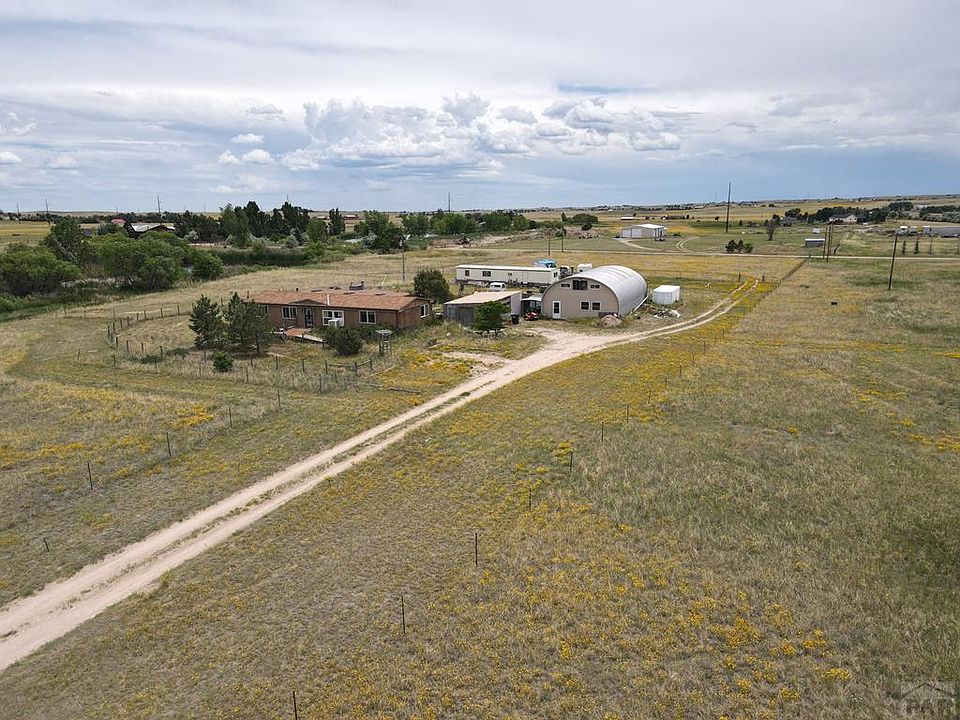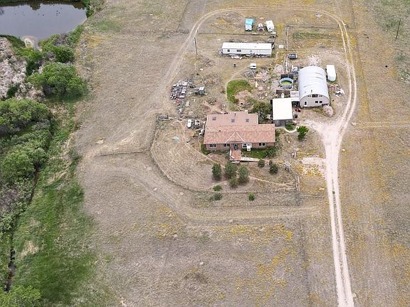 Welcome home to a completely remodeled 3 bedroom, 2 bathroom 1,500 square foot home on 5.28 acres with a YEAR ROUND POND AND CREEK, outbuildings, and fenced and cross fenced pastures only 2 minutes from Falcon shopping and 20 minutes to the heart of Colorado Springs. Soak in the view of Pikes Peak while watching a local deer herd make their daily journey through the property. The home features a completely remodeled interior, including custom concrete countertops in the kitchen, new composite plank flooring in the open-concept living and dining areas, and custom tile in both bathrooms. The large primary bedroom offers double closets. A pellet stove offers supplemental heat during cool weather. The large rear 14'x45' enclosed solar-design deck includes a wood stove, providing a year-round opportunity for enjoying the outdoors while being protected from the elements. The mudroom off of the deck provides an indoor-outdoor transition area and laundry space. Outside, the heated 2-story 30x50 steel agricultural building offers a year-round place for storage and projects. The south side of the ag building features two doors standing 12' and 8' respectively. It is wired for 220V with compressed air in the walls - a lift could be added if desired. Behind the ag building sits a 14'x50' storage and studio building with electrical, running water, DSL, a dedicated electrical panel, a 5-gallon hot water tank, and camper restroom. Come enjoy country living right outside the city!