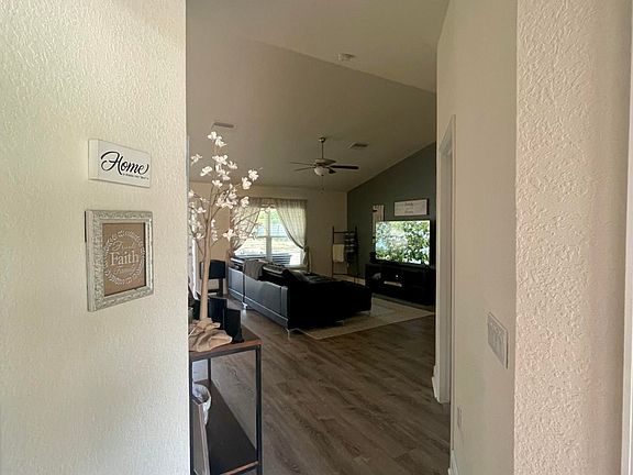 Wow! Look at this beautiful four bedroom, two bathroom, two car garage home. Built in 2017, this home is nearly brand new! Located on almost one half acre of land with the entire backyard fenced. Enjoy the fresh air and sunsets on the front and back covered patios. Spacious interior with a split bedroom floor plan. The open kitchen has stainless steel appliances, tile flooring and a breakfast bar. Both bathrooms have tile flooring. Master bathroom has dual sinks, garden tub and a separate shower! This one will not last, schedule your showing today. Enjoy Florida living at its finest!
