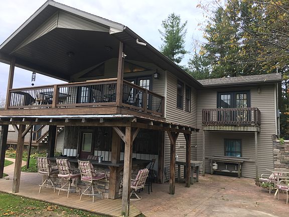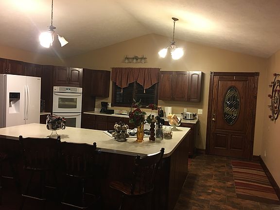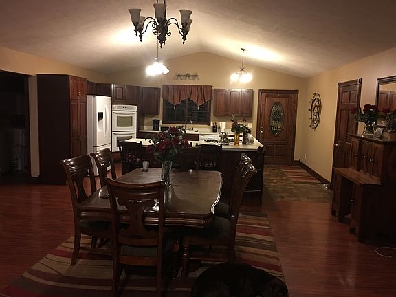 Beautiful 5 bedroom, 3 bath walk out ranch style home, featuring a 16x 36 saloon built from 1890's historic barn overlooking backyard. All nestled on a spacious 2.24 acres. Amenities include a large open kitchen, dining room, and living room. 3 bedrooms 2 baths main floor, 2nd living room down, 2 bedrooms, and bath. Custom built cement counter top bar inside with sink. Large Concrete patio outside under deck with ledge stone and cement counter top sitting area.