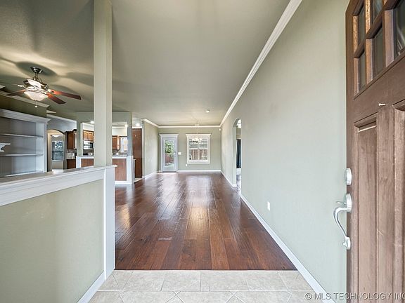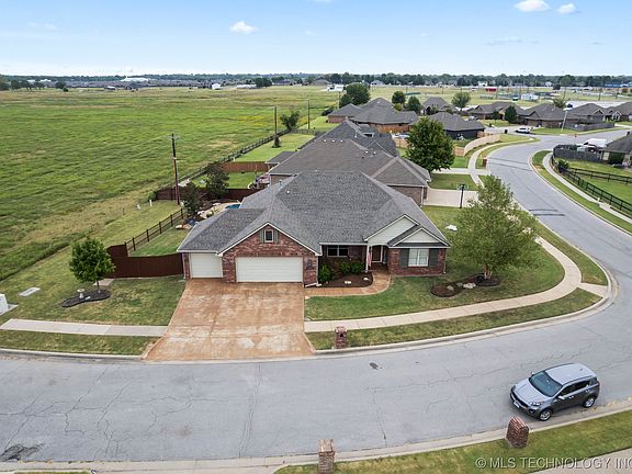 Welcome to your dream home in a serene and well-maintained neighborhood! This immaculate 4-bedroom, 2-bathroom residence boasts a 3-car garage and a stunning saltwater pool, offering an oasis of comfort and relaxation. Situated on a prime corner lot on a peaceful dead-end street with vacant land to the north, you'll feel like you're out in the country with the view from the pool! As you step inside, you'll be greeted by the warmth of wood floors and the inviting glow of a cozy fireplace in the spacious living room. The plantation shutters add an elegant touch to this welcoming space. The kitchen features a convenient bar top, beautiful cabinetry, granite countertops and newer appliances. The dining area opens up to a beautiful slate patio that's perfect for entertaining. The well-landscaped backyard is a true gem, with an outdoor fireplace and the crown jewel of this outdoor paradise – the saltwater pool. The pool is the perfect size for cooling off during the hot Oklahoma summers. A new pool pump was installed in 2022. The master bedroom is generously sized and easily accommodates large furniture. The master bathroom is a spa-like oasis with a large separate shower, a deep soaking tub, and an extra-large master closet – a perfect blend of luxury and practicality. This home offers three additional bedrooms, each with its own unique charm. One of the bedrooms can easily be transformed into a home office. The 3-car garage with a sink is a offers space for your vehicles, storage, and DIY projects. The neighborhood pond is just around the corner!
