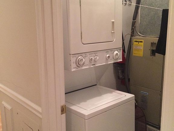This spacious, well-lit apartment is one block from Logan Circle, around the corner from Shaw and minutes from downtown is on a one-way, residential street, giving it a neighborhood feel without sacrificing the convenience of proximity to some of the city's best night life. This large 1 bedroom/1 bath unit could easily accommodate 1 or 2 residents. It is located in a quaint 8-unit building which has the conveniences of a modern apartment with the charm and character of a brownstone. The unit is a first floor walk-up, elevated from the street. Details about the place are as follows: 733 square feet, including a spacious 11.5 x 15 foot bedroom with two full-sized closets in the bedroom Washer/dryer in a separate laundry room (in unit) that has ample storage Large under-the-staircase storage closet (deep enough to fit luggage and a bike, as pictured!) Separate dining area Working fireplace Dishwasher, electric stove, oven, built-in microwave, plenty of counter space in the kitchen Crown molding, hardwood floors, recessed lighting and built-in shelving Natural light throughout Walking distance to the Whole Foods at 14th & P, the Giant at 9th & O, and Trader Joe's nearby at 14th & T