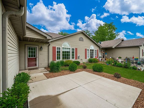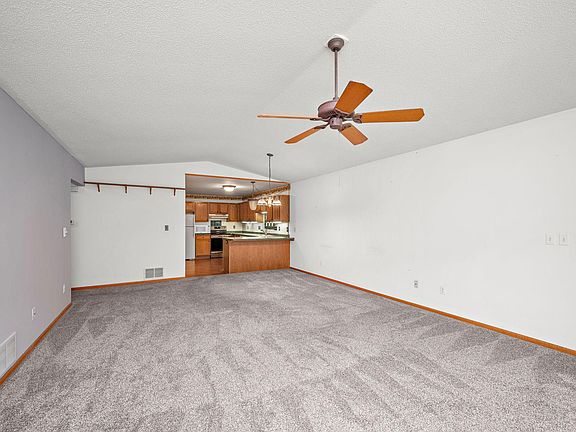 Spacious one-level townhouse with nice green space and good storage! This townhouse offers easy main level living and a convenient location close to shopping and restaurants. The foyer is generously-sized and the open living room has a vaulted ceiling with gas fireplace. The dining room and kitchen are spacious and offer a breakfast bar and ample cabinet space. The laundry is easily accessible right near the bedrooms. Each bedroom includes a walk-in closet and the Primary suite includes an ensuite 3/4 bath. The garage is larger than a typical townhouse and offers cabinets for storage. Enjoy the outdoor space with patio (sometimes deer and other wildlife come by the yard.)