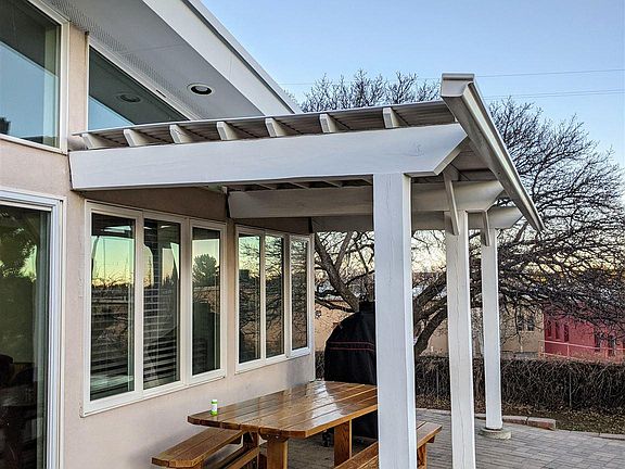 Sweet Western Area home in a great location! Easy access to parks, coffee shops, trails, LANL, medical center and schools. Gather around the cozy outdoor fire pit and enjoy the large, fenced backyard filled with trees and shrubs. 2020 upgrade to kitchen features stainless steel appliances, soft-close cabinetry, quartz countertops and saltillo tile. Some of the sought-after Western Area details (hardwood floors, built-in storage, and classic wooden, beamed ceilings) remain, while modern additions to the home, including added family room/bathroom, laundry/mud room, and an oversized one-car garage, provide extra living space and bring in lots of natural light. You'll love the southeast addition, which boasts stained concrete floors, a loft, high ceilings, and a wall of windows with southern exposure! This space is currently being used as a family room and could also be a primary suite, as it includes a full bathroom. Laundry room and a small office are just a few steps away. Don't miss this updated classic! It's a charmer and sure to go quick.