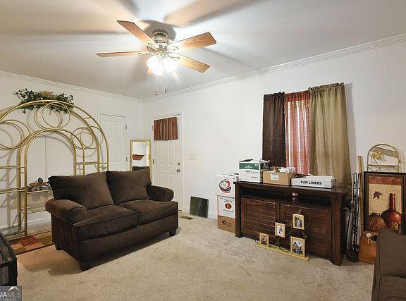 Prepare to be enchanted by this charming residence nestled in an established neighborhood. This delightful 2 bedroom, 2 bath home boasts 1,268 square feet of tasteful open layout. The layout seamlessly connects the den to the kitchen creating a harmonious flow that fosters an atmosphere of comfort and togetherness. In 2017 the exterior of this lovely home received fresh new vinyl siding and a new roof giving it an eye-catching appearance but also long-lasting quality and durability. The back of this home has Double-gated fencing to enclose and secure outdoor enjoyment. The backyard features include a nice backyard swing, a wired garage and/or workshop area with roll-up door and built in dog kennel, a cozy covered attached patio and a nice area to place a fire pit and watch the stars at night. Copyright Georgia MLS. All rights reserved. Information is deemed reliable but not guaranteed.